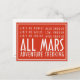 Envoyez cette carte postale à votre ami. Faites venir votre derrière sur Mars et rejoignez la randonnée de l'aventure sur Mars Explore Mars. Salissez vos bottes spatiales avec cette agence de voyage All Mars.
