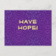Have Hope! est un message inspirant pour aider à encourager et à élever l'esprit de ceux qui sont dans le besoin! L'arrière - plan est fait dans le simple design flutter! Simple Fbattage est un design abstrait artisanal avec un arrière - plan violet qui ajoute de l'élégance à cette carte postale !