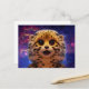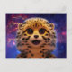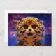 Illustration imaginaire d'un mignon bébé cheetah peluche contre un ciel cosmique magique.