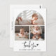 Cette carte photo de remerciement pour Baby Shower Rustique Chic est le mélange parfait d'élégance et de chaleur, conçue pour exprimer votre gratitude sincère d'une manière vraiment spéciale. Présentant trois photos personnalisées de votre petit bout, le design met en valeur la première image en haut dans une forme d'arche charmante, tandis que deux autres photos précieuses s'assoient en dessous, toutes magnifiquement séparées par une fine ligne blanche sur un fond blanc épuré. Sous ce magnifique collage, un script manuscrit rustique moderne écrit gracieusement « Merci », suivi du nom et de la date de naissance de votre bébé, ajoutant une touche personnelle et sentimentale. Le verso de la carte offre un espace pour votre message de remerciement personnalisé, ce qui en fait un souvenir précieux pour les amis et la famille. Avec son design intemporel et son impression de haute qualité, cette carte de remerciement est une façon sincère de partager votre appréciation tout en célébrant votre nouveau