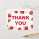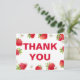 Cette carte de remerciement fait partie de notre thème de shower de bébé aux fraises qui capture l'essence d'une journée d'été ensoleillée avec un design charmant sur le thème des fraises. Un fond de couleurs vives et gaies rappelant un ciel bleu clair et une herbe verte vibrante plante le décor. Les coins sont ornés d'illustrations ludiques de fraises charnues et juteuses, accompagnées de petites fleurs blanches qui ajoutent une touche de fantaisie et de fraîcheur. Embrassez la chaleur de la saison et profitez d'une journée remplie d'amour, de rires et de délicieux friandises. Parfait pour un shower de bébé estival, parfait pour aller avec des décorations de pique-nique, de jardin fleuri ou de thé. Utilisez le modèle pour ajouter votre texte et le personnaliser.