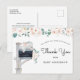 Merci à vos invités de célébrer la maman à être! Cette carte postale de remerciement comporte un éléphant aquarelle dormant sur une boîte aux lettres remplie de fleurs roses douces et de verdure pour correspondre à notre baby shower par invitation postale. Personnalisez avec vos informations ou cliquez sur "Cliquez pour customiser plus loin" pour modifier les styles, la taille et les couleurs des polices.
