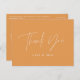 Baby shower script moderne orange élégante fête merci carte postale design. Conception idéale sans distinction de genre.