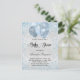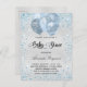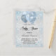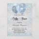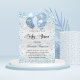 Un arrière - plan métallique à l'aspect faux argenté. Décoré avec de la poussière et des ballons de faux parties scintillant bleus. Personnalisez et ajoutez un nom, un âge et des détails de la fête. Le nom est écrit avec un script de style écrit à la main. Conseil : Si vous ne voulez pas qu'il ressemble à une carte postale, cliquez sur customiser, allez à l'arrière et retirez le séparateur et le timbre postal.