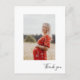 Carte de remerciements de baby shower moderne dans un script manuscrit "merci" design avec une photo préférée de votre bébé / famille. Téléchargez votre photo et customisez le côté arrière de la carte avec votre message de remerciement.