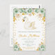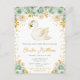 Cette invitation au baby shower mignonne et fantaisiste présente un élégant swan et une sauge vert rose arrangements floraux avec des confettis de parties scintillant en faux or. Le texte combine écriture manuscrite et polices sans serif pour un look élégant et moderne. Un baby shower à thème pour les cygnes. Graphiques par heyiamalice et SunflowerDayLove
