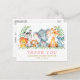 Aquarelle Safari Animaux Verdure Baby shower Carte postale Merci. Les bébés animaux comprennent l'éléphant, le singe, la girafe, le rhinocéros, le zèbre et le lion sur les feuilles de fougères. Aquarelle Botanique Verdure. Texte rose et or.