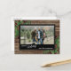 Unique, classique, tendance, jolie et décorative Carte de vacances. Joy Holidays salue le texte et l'espace pour customiser ou personnaliser avec une photo, nom de famille (ou noms individuels) et message de votre choix. Cadre de baies rouges de vin de Bourgogne et de bouquets de fleurs vert foncé sur un élégant chalet rustique style ferme en bois de barnwood planches motif arrière - plan.