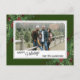 Unique, classique, tendance, jolie et décorative Carte de vacances. Joy Holidays salue le texte et l'espace pour customiser ou personnaliser avec une photo, nom de famille (ou noms individuels) et message de votre choix. Cadre de baies rouges de vin de Bourgogne et de bouquets de fleurs vert foncé sur un arrière - plan vert foncé et élégant.
