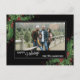 Carte de vacances unique, classique, tendance, jolie et décorative. Texte de vœux de Joyuses Fêtes et espace pour personnaliser avec une photo, le nom de famille (ou les noms des individus) et le message de votre choix. Encadré par des bouquets de baies de vin bordeaux et de feuillage vert foncé sur un fond noir élégant.