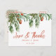 Carte de remerciement de mariage festive de Noël aux baies rouges. Célébrez l'amour et la gratitude avec notre carte de remerciement de mariage festive de Noël aux baies rouges. Le design enchanteur capture la joie de la saison, orné de baies rouges vibrantes qui symbolisent la chaleur et le bonheur. Cette carte est la façon parfaite d'exprimer vos sincères remerciements à vos invités après votre célébration de mariage festive. Le mélange charmant de l'esprit des fêtes et de l'élégance du mariage fait de cette carte un souvenir délicieux. Exprimez votre appréciation avec style et flair en partageant vos moments spéciaux et votre gratitude. Répandez la joie des fêtes et l'amour avec cette carte exquise, un merveilleux souvenir de votre journée inoubliable. Cette jolie carte de remerciement de mariage peut être personnalisée en changeant les noms des mariés et les autres détails. Pour toute personnalisation supplémentaire, n'hésitez pas à me contacter