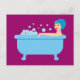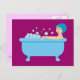 Cette adorable illustration de fille de baignoire rétro présente une mignonne dame kitsch avec des cheveux bleus, des bijoux en perles roses et un sourire prenant un bain à bulle dans une baignoire bleue ! Ce dessin humoristique d'inspiration vintage est le cadeau idéal à acheter pour tous ceux qui aiment l'art vectoriel indie kitsch et coloré original !