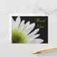 Customisez l'élégante White Daisy sur Black Merci Postcard avec votre message personnel ou note de remerciement, reconnaissance et gratitude. Cette élégante note de remerciement botanique personnalisée présente une photo florale d'un gros plan d'une fleur de marguerite blanche sur un arrière - plan noir.