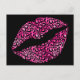 Carte Postale Baiser à lèvres noir et rose chaud Leopard