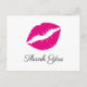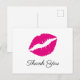 Carte Postale Baiser au rouge à lèvres rose chaud Merci élégant
