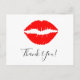 Baiser rouge à lèvres brillant imprimé avec un texte de calligraphie personnalisable message "Merci !". L'image des lèvres rouges est indépendante du message texte, vous pouvez donc customiser la taille et le placement. Carte postale rouge, noir et blanc. Créez vos propres cartes postales de douche nuptiale. Concevez votre propre bachelorette party merci cartes postales. Si vous transférez votre design personnalisé vers un autre produit, vous pouvez choisir votre couleur arrière - plan préférée pour créer un cadeau de remerciement qui correspond à votre palette de mariages choisie.