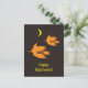 Carte de vœux amusante et simple pour un Joyeux Halloween ! avec la silhouette orange d'une sorcière chevauchant un balai et une lune jaune, sur un fond uni de ciel nocturne noir cassé. Vous pouvez modifier le texte ainsi que la taille et la position de l'image. Ce design correspond aux collections Halloween 'Hello Witch'.