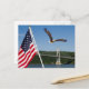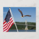 Carte postale avec un aigle à tête blanche et le drapeau américain avec le pont Mid Hudson dans l'arrière - plan.