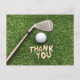 Carte postale Balle de golf avec le mot merci sur l'herbe verte