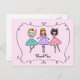 Un trio de ballerines et de danse. Personnalisez ces cartes postales pour dire merci après une fête d'anniversaire, elles sont parfaites pour distribuer aux invités. Ces cartes postales peuvent également être personnalisées comme une invitation peu coûteuse.