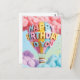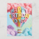 Une illustration numérique 3D joyeuse et vibrante représentant un ballon à air chaud coloré flottant parmi des nuages doux et duveteux. Le ballon est décoré des mots "JOYEUX ANNIVERSAIRE À VOUS" en lettres bulles 3D grasses et arrondies de différentes nuances pastel. La scène est placée sur un fond de rêve composé de nuages roses, violets et bleus avec une légère dispersion de confettis colorés. Personnalisez-le avec le nom de votre choix.