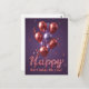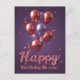 Vous cherchez le moyen idéal d'envoyer des vœux d'anniversaire qui sortent de l'ordinaire ? Ne cherchez pas plus loin ! Notre carte postale personnalisable est là pour rendre chaque célébration encore plus spéciale. Le design présente un bouquet vibrant de ballons métalliques dans des tons riches de rose doré et de lavande, flottant gracieusement sur un fond violet foncé. Le texte "Joyeux" est écrit dans une police scintillante et brillante et "Anniversaire à toi !" dans une typographie grasse et personnalisable.