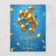 Célébrez avec style grâce à cette carte postale personnalisable vibrante et festive, parfaite pour toutes les occasions d'anniversaire ! Le design présente une superbe composition de ballons dorés et bleus, avec un ballon en forme d'étoile qui se démarque en haut, le tout sur un fond bleu vif. Des confettis dorés ajoutent une touche supplémentaire de célébration, ce qui rend cette carte postale vraiment accrocheuse. Le texte "Joyeux Anniversaire" est affiché de manière élégante dans un mélange de polices grasses et de script, créant un message dynamique et joyeux. La meilleure partie ? Le texte est entièrement personnalisable, vous permettant d'ajouter une touche personnelle pour rendre le jour spécial de quelqu'un encore plus mémorable. Que vous envoyiez des vœux d'anniversaire à un ami, un membre de la famille ou un collègue, cette carte postale est sû