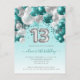 La carte postale de cette jeune fille festive à l'invitation du 13e anniversaire comporte un guirlande d'arcs turquoise et argenté au-dessus d'un ballon en faux argent numéro "13" et un ruban turquoise et des confettis. Personnalisez le texte avec le nom et l'anniversaire de votre enfant dans un élégant script turquoise d'écriture et les détails de la partie en gray sans serif police sur un turquoise ombre pâle arrière - plan.