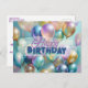 Cette carte postale d'anniversaire personnalisable présente un design vibrant et festif. Le recto de la carte postale présente un ensemble coloré de ballons, de confettis et d'un gâteau d'anniversaire joyeux, créant une atmosphère joyeuse et accueillante. Le texte est entièrement personnalisable, vous permettant d'ajouter un message d'anniversaire personnalisé.