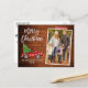 Script de brosse moderne Aquarelle Vintage Camion rouge avec sapin de Noël Joyeux Noël Famille Photo Carte postale - Russe Pays Bois, Bande artisanale