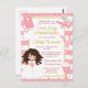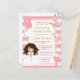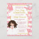 Belle brunette fille rose sainte première communion design avec arrière - plan rayé rose et confetti en feuille d'or. Graphiques de Mujka et KlouiseDigiArt sur Etsy.
