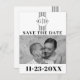 Cette carte postale Save the Date présente un design époustouflant avec des rayures noires et blanches et un monogramme. Les bandes verticales créent une toile de fond visuellement attrayante, tandis qu'un cadre rond orné de vos initiales et de deux coeurs adorables ajoute une touche d'élégance. La carte postale comprend également une belle photo du couple, capturant leur amour et l'excitation pour leur prochain mariage. La date du mariage est affichée en caractères gras, ce qui permet de ne pas oublier la journée importante. Sur le dos de la carte postale, les rayures horizontales continuent, offrant un look cohésif et élégant.