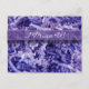 La photographie en gros plan capture des bandes de papier violettes froissées et déchiquetées sur la couverture de la carte postale avec la même image d'opacité réduite au verso. Personnalisez le texte du modèle pour votre occasion.