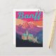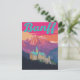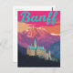 A dramatically colorful vintage-style travel poster for Banff, Alberta, Canada. This striking artwork features a majestic castle-like hotel (reminiscent of the Banff Springs Hotel) set against the vivid, pink and purple Rocky Mountains at sunset. The bold, graphic style makes this retro illustration truly unique. It's the perfect postcard for mountain lovers, fans of Canadian travel, and collectors of highly stylized, colorful poster art.