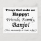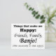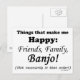 Ce qui me rend heureux : Famille, Amis, Banjo ! (Pas nécessairement dans cet ordre !) Qu'est-ce qui vous rend le plus heureux ? Pour certaines personnes, c'est de la musique, qu'il s'agisse de jouer d'un instrument, de chanter ou d'écouter de la musique.
