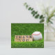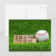 Carte Postale Baseball et batte avec le mot Merci. sur fond vert