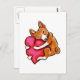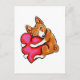 From Andie's original ink and colored pencils subject illustration featuring a red/white basenji squeezing a heart shaped pillow. (c)2014