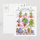 Carte postale avec aquarelle illustrant un jardin de cuisine basilic avec différents types de basilic et ingrédients pour pesto.