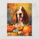 Un portrait coloré d'automne et de Thanksgiving d'un Basset Hound.