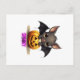 Carte Postale Bat adorable sur Citrouille mignonne Halloween Déc