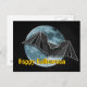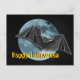 Carte Postale Bat en papier Origami avec Lune Bleue/Jaune/Brown