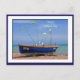 Bateau bleu sur la plage aux drapeaux verts. Une façon merveilleuse de souhaiter à ton père une Fête des pères heureuse.