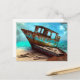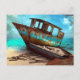 Carte Postale Bateau Vieux Abandonné sur une Plage de Sable Dése