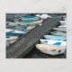 Customisez la carte postale Row Boat at Dock avec votre propre message ou texte personnel. Cette carte postale personnalisée à thème de navigation de plaisance présente une photo de petits bateaux de pêche attachés à un quai en bois patiné dans une marina d'Ogunquit dans le Maine.