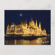 Cette carte postale capture le majestueux bâtiment du Parlement à Budapest, magnifiquement illuminé contre le ciel nocturne. Tiré d'une croisière fluviale, il présente l'architecture emblématique qui brille sous la lumière sereine d'une pleine lune, réfléchissant sur le Danube. C'est un endroit idéal pour ceux qui ont vécu la magie de Budapest la nuit ou rêvent de visiter cette ville magnifique.