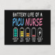 Humorous shift chart showing the battery life of a PICU nurse, also known as a pediatric intensive care nurse, with colorful levels from start to double shift. Ideal for pediatric ICU staff who enjoy relatable workplace humor.