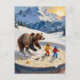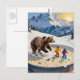 Carte Postale bear and kids ski in a bowl of porridge