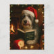 Humorous Christmas postcard featuring a Bearded collie dog reading 'The Cheese Tax at Home Regulations 2025' whilst trying to resist the urge to eat the cheese that someone's left on the table right in front of its nose!