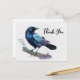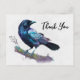 Carte de remerciement avec un joli dessin à l'aquarelle d'un corbeau. Des couleurs bleu foncé et violet vif accentuent la beauté de cet oiseau.