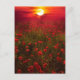 Carte Postale Beau coucher de soleil sur le champ de fleurs roug